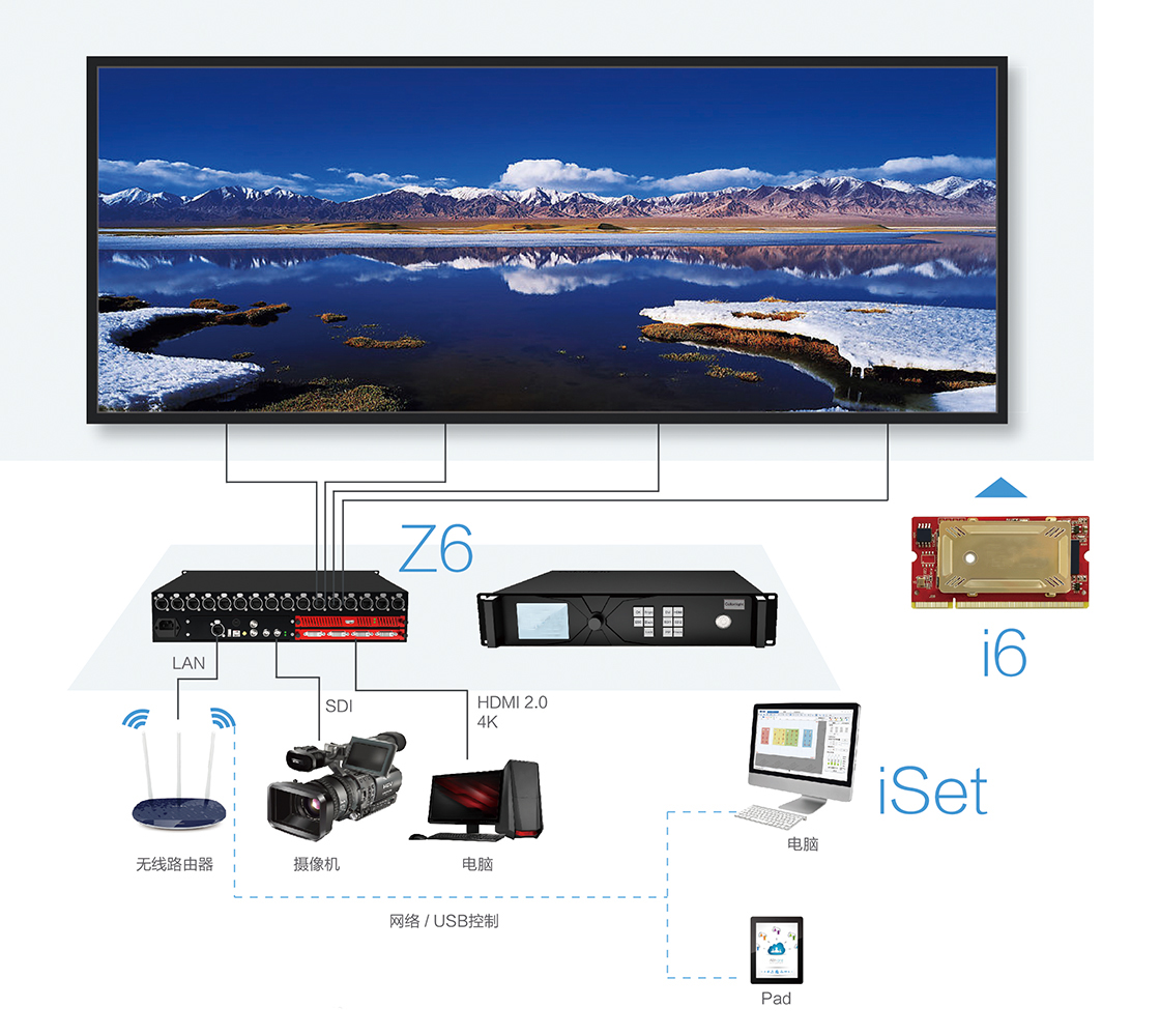 ·支持3840*2160@60Hz信号直接输入或4路HD信号拼接输入,最宽/最高可达8192像素